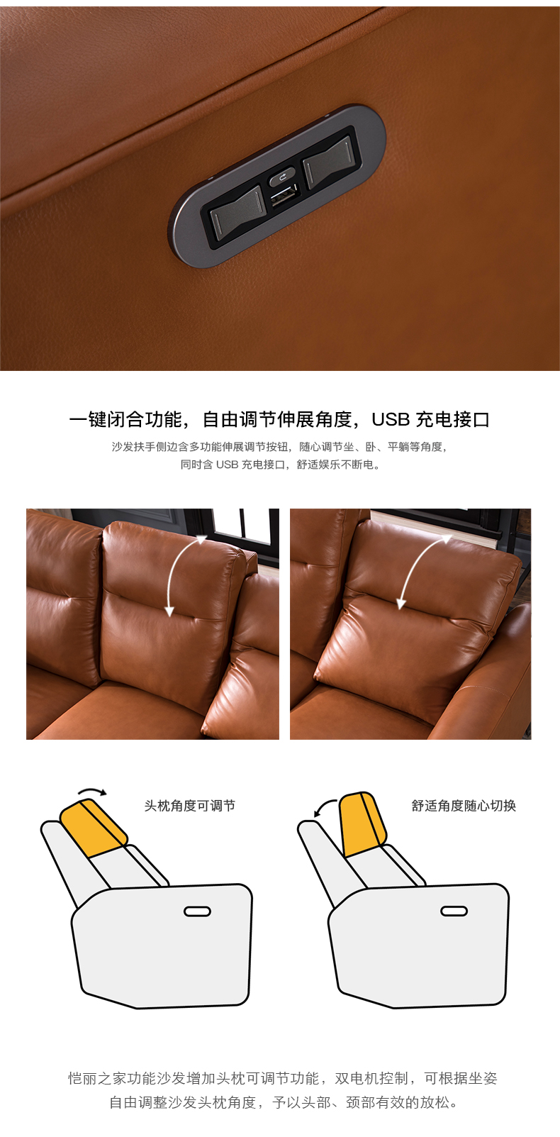 | 设计理念: | 该款电动功能三人沙发,接触面采用进口头层牛皮打造,赋予沙发更高的品质感和价值感;置于客厅,兼具时尚奢华的风范。东亚高回弹海绵,不易变形,软度与支撑度兼容;优质功能金属结构架,开合自如,经久牢固耐用;沙发采用金属脚支撑,稳固耐用,并增加耐磨防滑脚垫,保护地板、地毯不被划伤,兼具实用功能与时尚感。 |