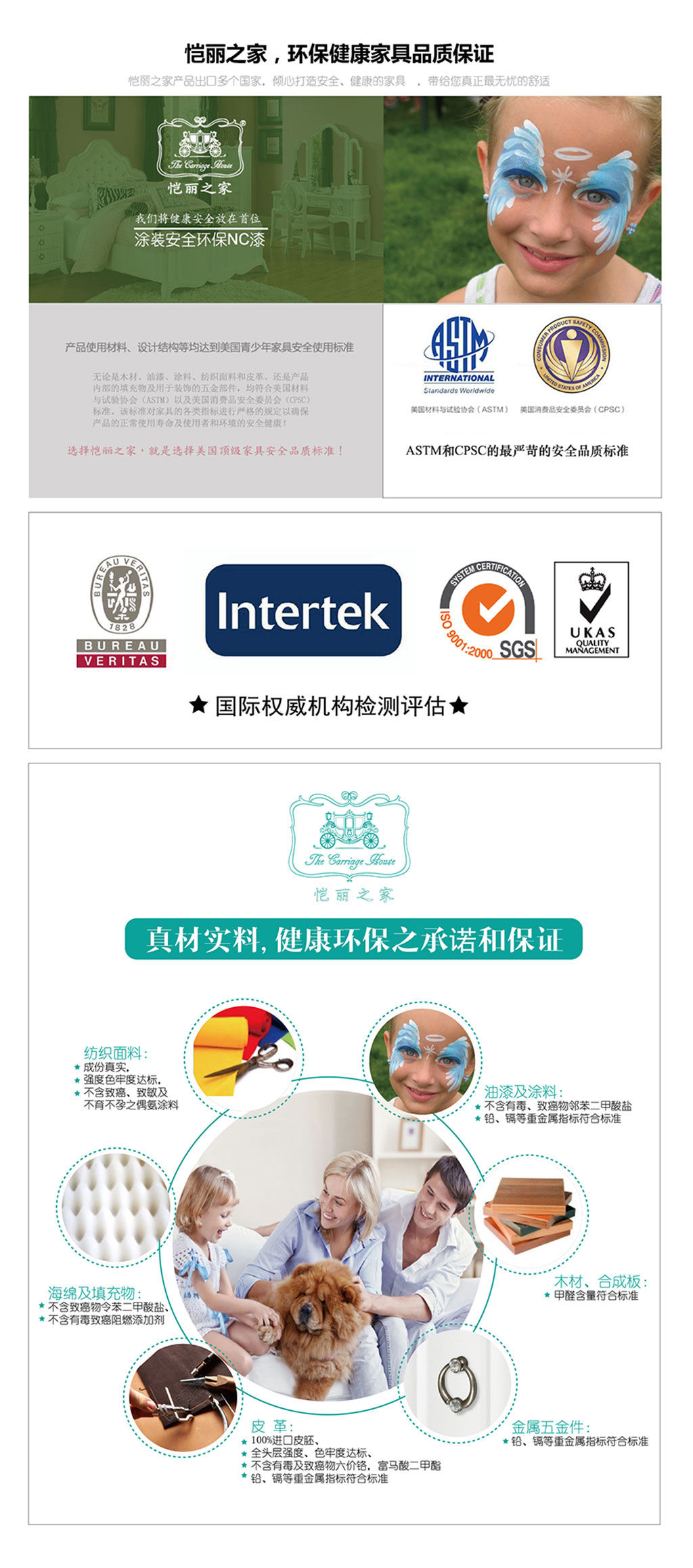 恺丽之家产品,无论是木材、油漆、涂料、纺织面料和皮革、还是产品内部的填充物及用于装饰的五金部件,