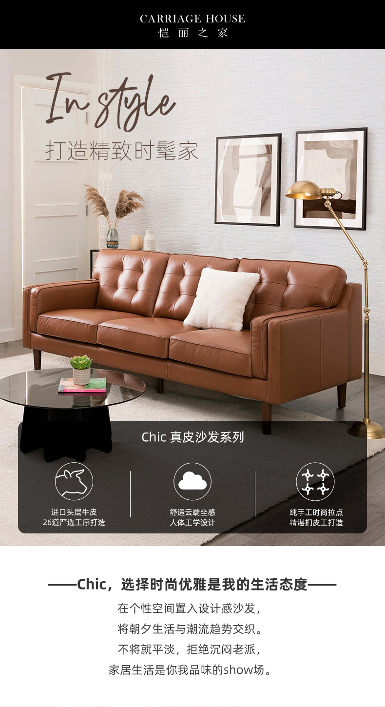 [恺丽之家] 客厅系列 2022新品摩登经典头层牛皮三人位沙发 美式现代轻奢真皮沙发 大小户型组合