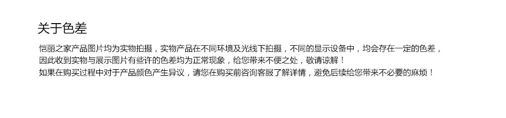 | 温馨提示:产品属人为损坏或使用不当,恺丽之家将不予退换货! | ||||
