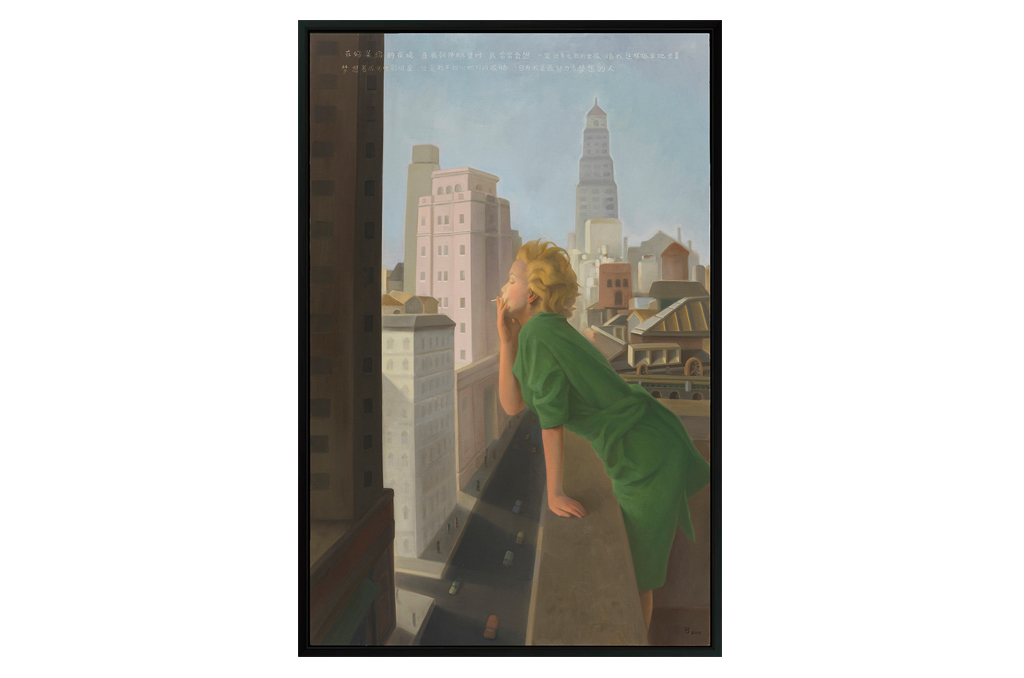 画作《一九五五.纽约二十九》,穿着绿色长裙的梦露形单隻影站于阳台上,没有与任何同伴建立联繫,梦想?成为电影明星,也想透过电影忘掉孤独的自己。作者陈可说:“我和她都有‘梦’,而我的是一个对艺术纯粹的追求。”