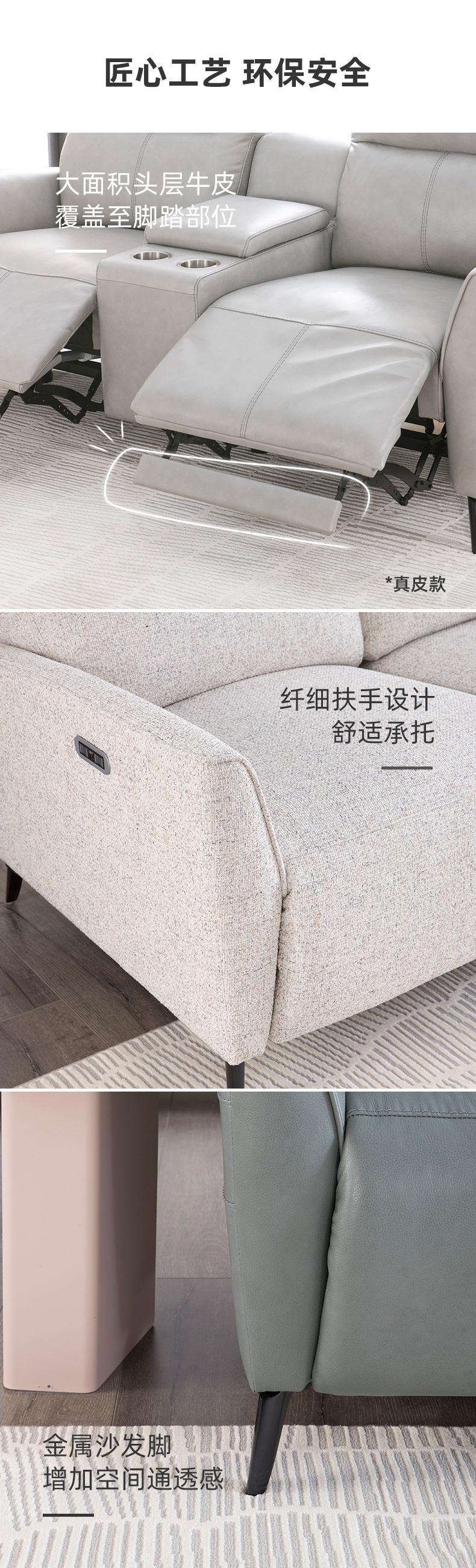 [恺丽之家] 2022年新品现代简约进口头层牛皮双电动单人位功能沙发 美式现代真皮功能沙发