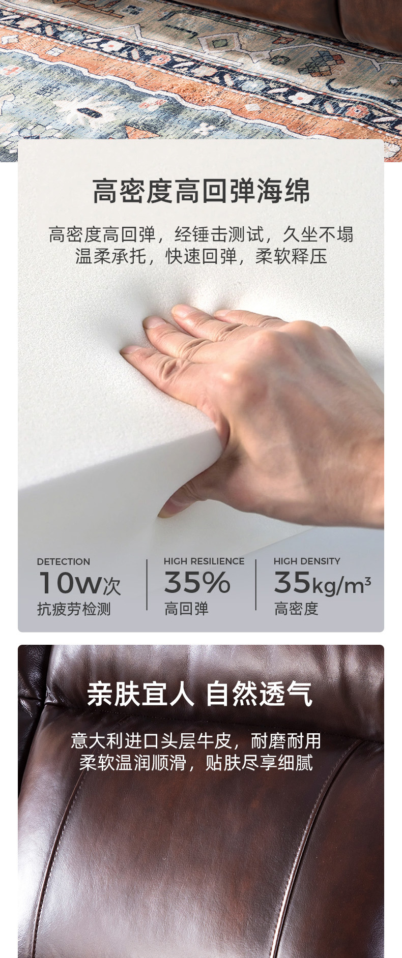 | 设计理念: | 美式经典电动功能沙发,沉稳大气深棕色,原汁原味美式风情,在功能沙发造型上,恺丽之家产品设计师,运用现代创新艺术设计手法,摒弃传统功能沙发的臃肿,线条更加精致简约,更加节省现代居住空间,人体工学分段式创新设计,实现全身心的伸展与放松,同时置入智能科技家居功能,一键触发,实现更多可能性。全新打造集美观设计与实用为一体现代功能沙发, 符合都市人不将就,不赘余的生活追求,打拼不再孤军奋战,放松休闲有伴。 |