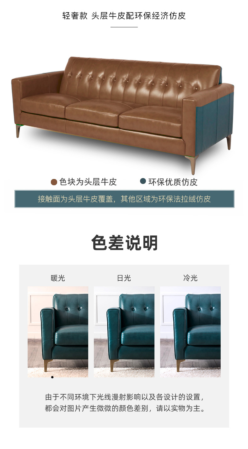 | 设计理念: | 恺丽之家2018新品沙发,精选意大利进口全头层牛皮打造,自然柔软的皮质触感以及舒适的坐感,高品质生活随心享受;沙发细节设计精致考究,装饰线条流畅,简洁的靠背搭配经典的拉扣设计,拥有皮质沙发所具有的高贵,却又不乏简练雅致的现代时尚元素;沙发选用2018年大热流行色-孔雀蓝,高贵而又华美的色彩凸显了主人的品味,置于空间中,满满的艺术气息扑面而来,内心深处的梦想家居即刻呈现。 |