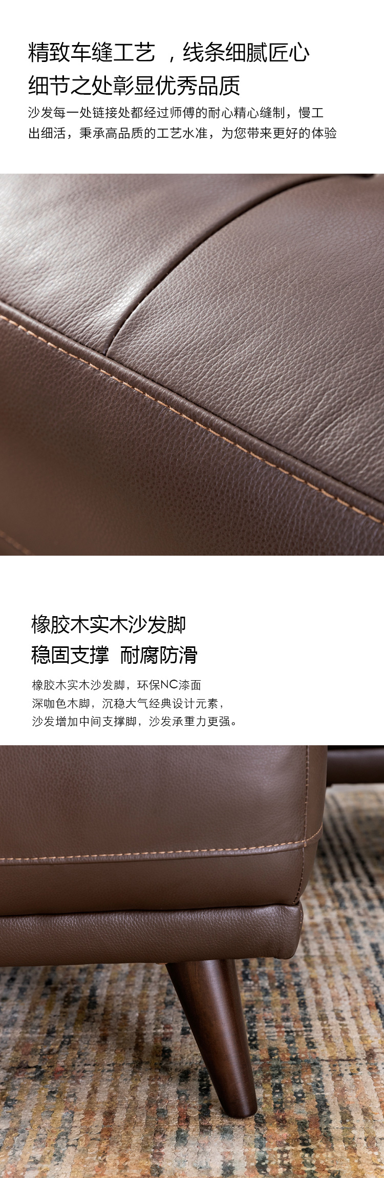 恺丽之家摩登经典系列,真皮转角沙发,进口头层牛皮,细腻柔软,质感出众。拉点装饰细节设计,手工均匀缝制,工艺精湛。沙发端庄沉稳大气,又不失优雅,同时带来舒适的坐卧体验。