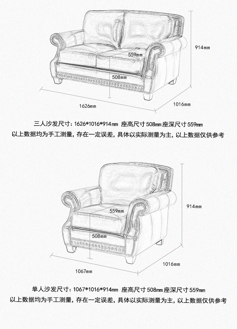 客厅系列 美式经典真皮单人位沙发 高档头层牛皮沙发