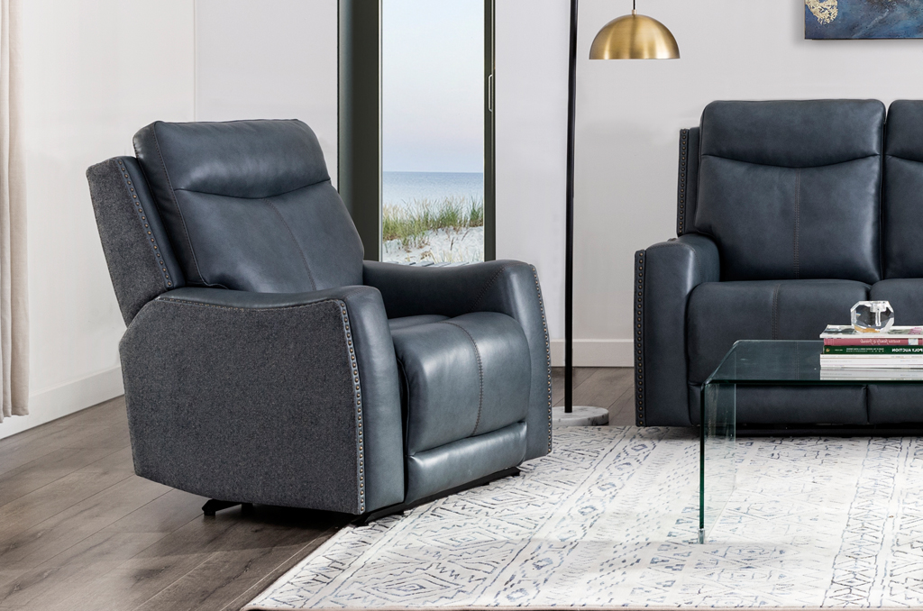 [恺丽之家] 客厅系列 美式现代真皮双电动多功能单人位沙发 皮布拼接单人沙发