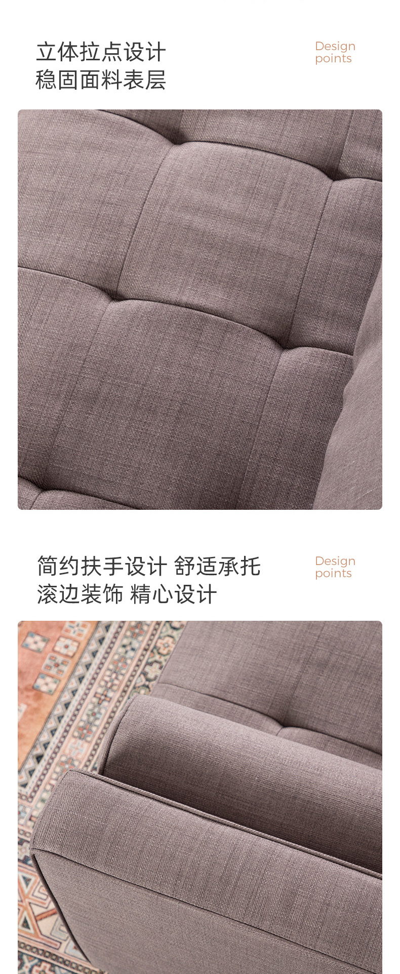 | 设计理念: | 恺丽之家2019新品,灵感来源于Mid-Century Modern20世纪中叶摩登经典家居风格,恺丽之家设计师们,以21世纪独特的角度,将这一经典运用到现代风格时尚中,重新诠释Mid-Century家居风格。此款沙发造型简约,时尚的几何线条勾勒了Mid-Century家居风格的独特魅力;三人沙发坐垫整体海绵切割,坐面拉点装饰并固型,经久依然保持完美造型,高回弹海绵坐垫以及饱满的靠包,尽情悠享舒适落座体验。 |