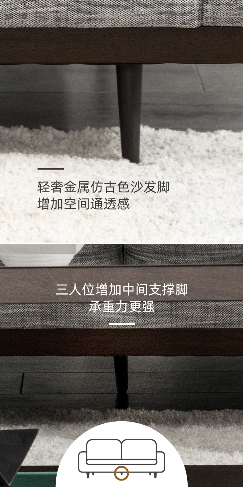 [恺丽之家] 客厅系列 2022新品简约现代布艺三人位沙发 北欧轻奢时尚小户型布艺沙发